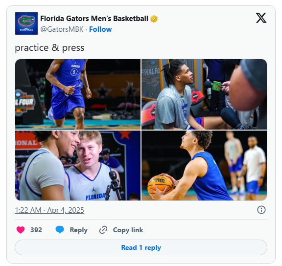 On Thursday, the Gators (34-4)—winners of 10 straight and 16 of their last 17—arrived at the Alamodome, the stage for this weekend’s 2025 Final Four. They will face Southeastern Conference rival Auburn (32-5) in Saturday night’s semifinal, with the victor advancing to Monday’s national championship game.