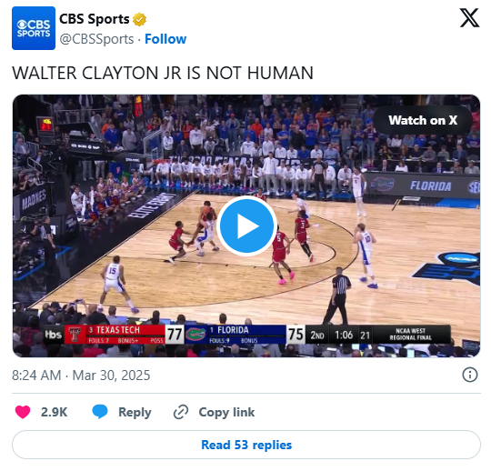 That humility came shortly after Clayton delivered a performance worthy of the spotlight. In one of Florida’s most memorable NCAA Tournament wins, he scored 13 of his game-high 30 points in the final five-plus minutes. The Gators, trailing by nine with under three minutes left, surged past 3-seed Texas Tech with a barrage of clutch plays to secure an 84–79 victory in the West Region final.