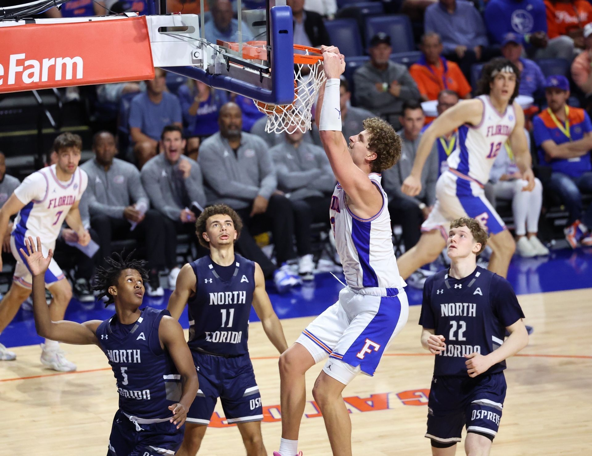 Junior UF forward Alex Condon throws down on his way to 25 points against UNF Thursday night.