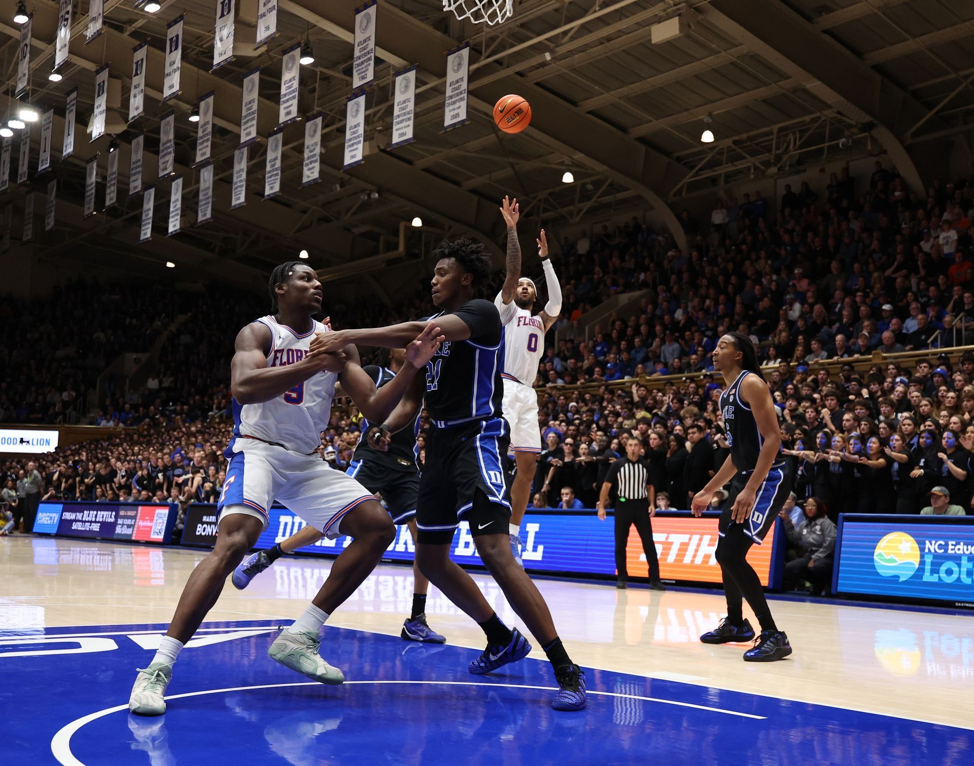 Most of it came in the opening half. Duke led by 12 at the break and scored the first basket of the second half, but UF looked revitalized coming out of the locker room. The Gators responded with a 9-0 run that forced a Blue Devils timeout, trimming the margin to five. The surge extended to 14-2, pulling the visitors within two and signaling they weren’t backing down.