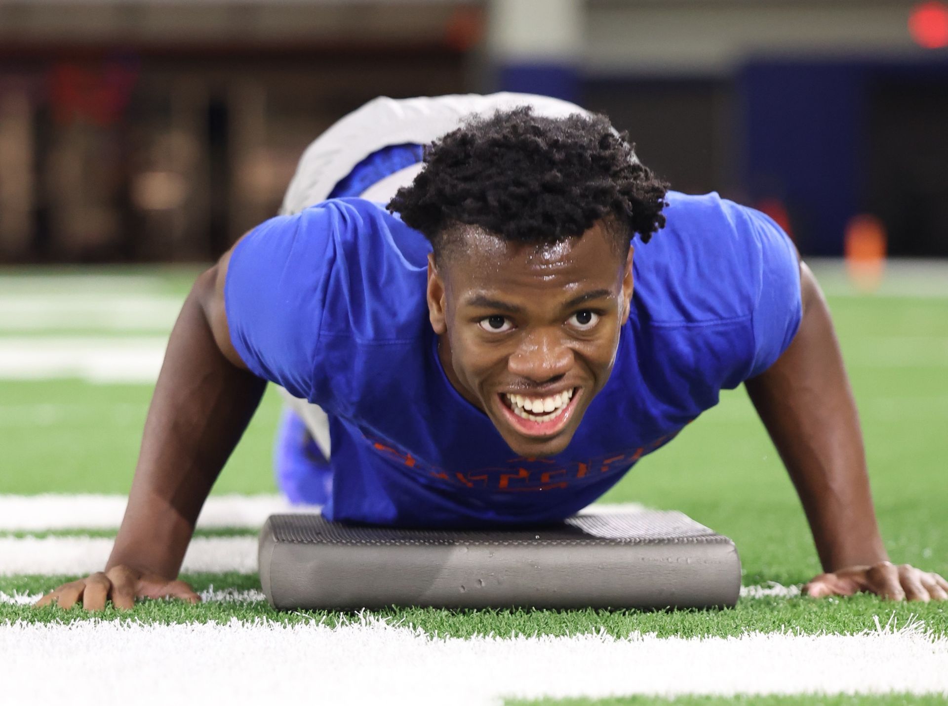 Bouncy, long and athletic CJ Ingram at practice in the O'Dome