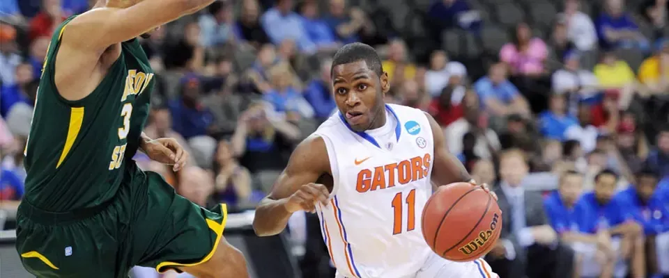 UF senior point guard Erving Walker (11) had 15 points in helping lead the Gators to a 34-point smashing of Norfolk State in the 2012 NCAA Tournament at Omaha, Nebraska.