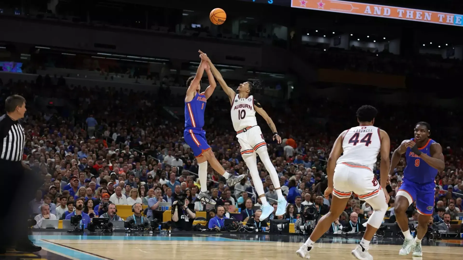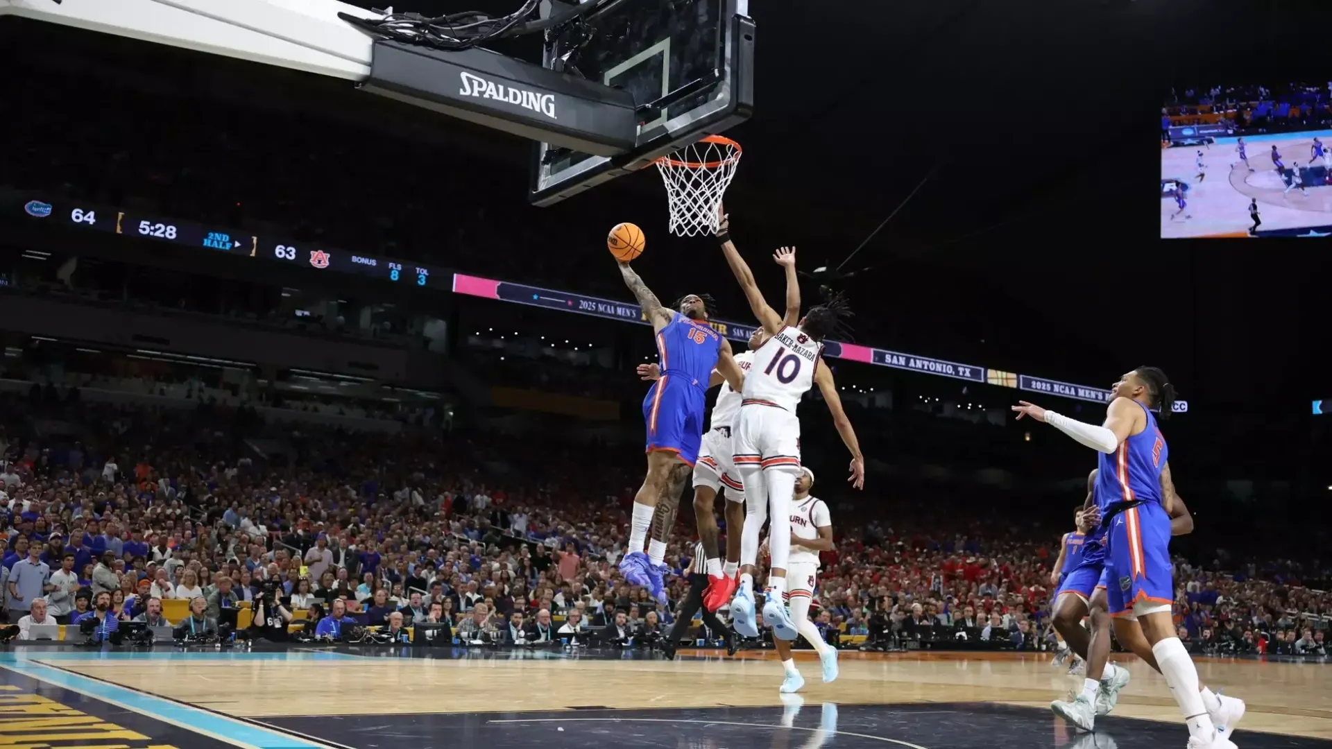 After trailing 49–40 early in the second half, Florida responded with an 11–0 run to take the lead. Auburn stayed competitive behind SEC Player of the Year Johni Broome (15 points, seven rebounds) and Chad Baker-Mazara (18 points, 4-of-7 from deep).