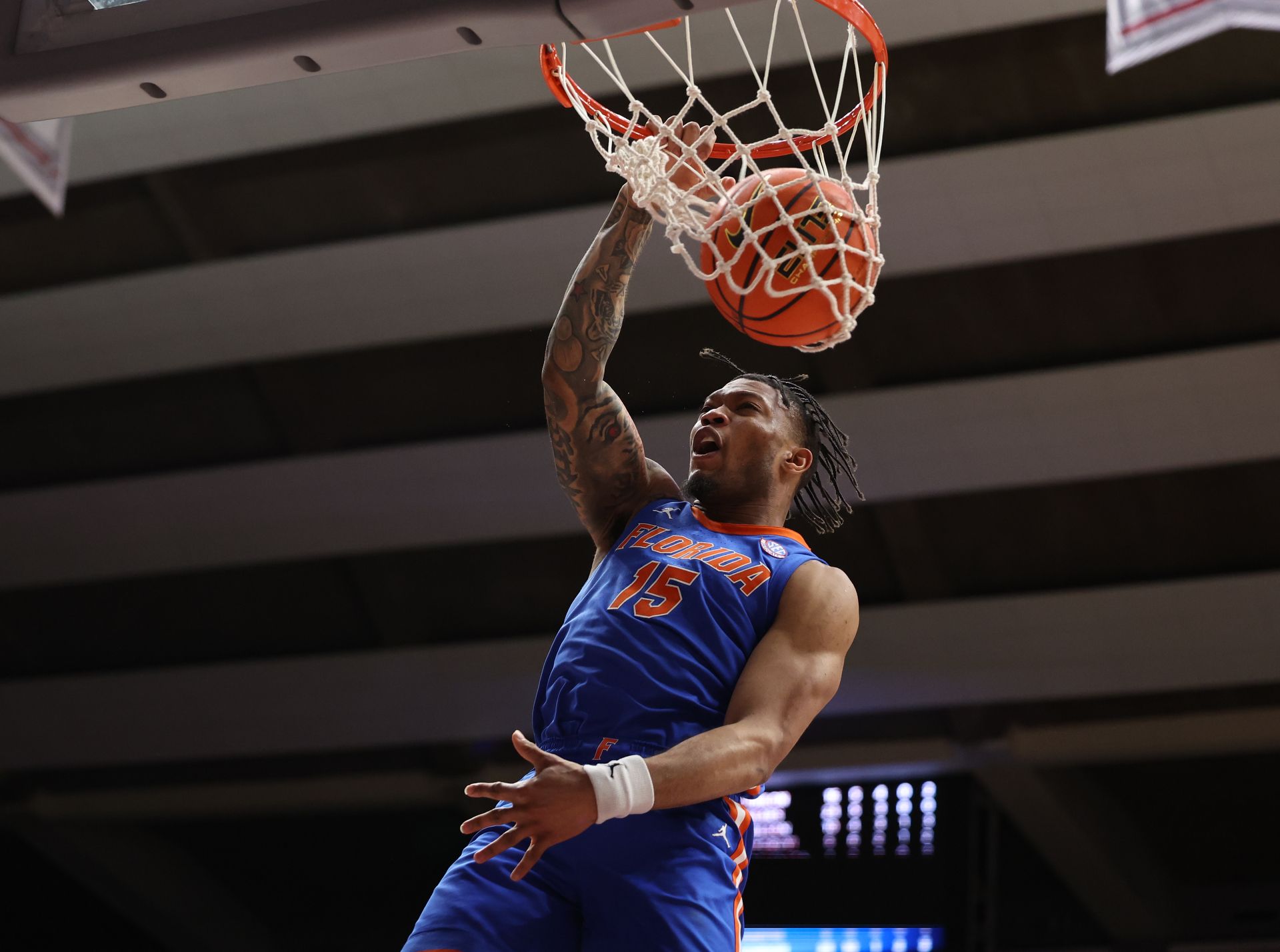 The Tide continued to press, forcing Florida to withstand another surge. Alex Condon scored 13 points over a seven-minute stretch, including a couple of alley-oop dunks off pinpoint feeds from Clayton. UF’s lead, which had stretched to 14 with 5:55 left, began to shrink as Alabama’s coach Nate Oats instructed his team to foul to extend the clock.