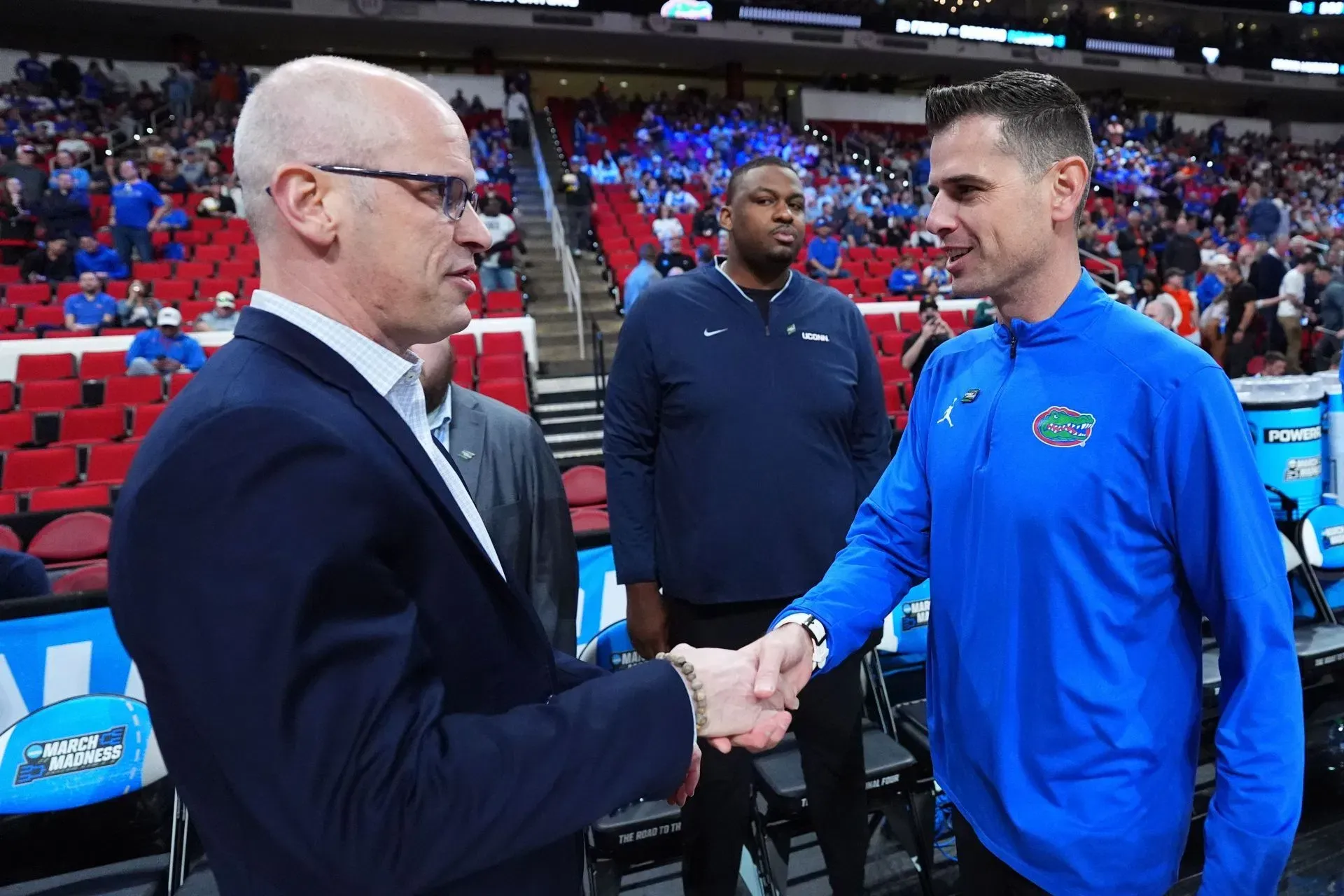UConn coach Dan Hurley (left) and UF's Todd Golden (right) are two of just seven active NCAA coaches with national titles.