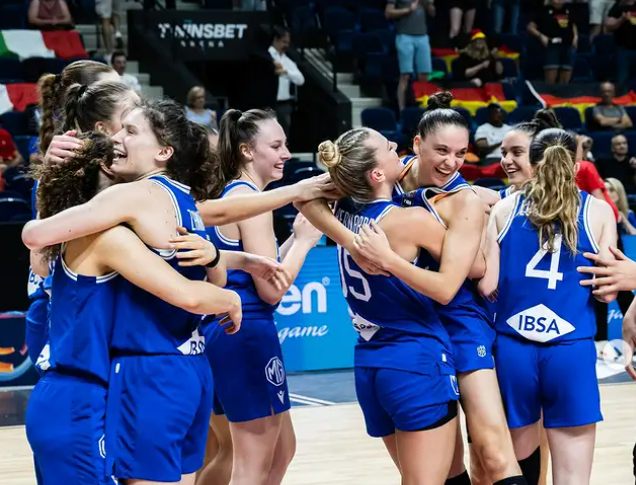 Caterina Piatti (14) with her Italian national team during the 2024 FIBA U20 competition.