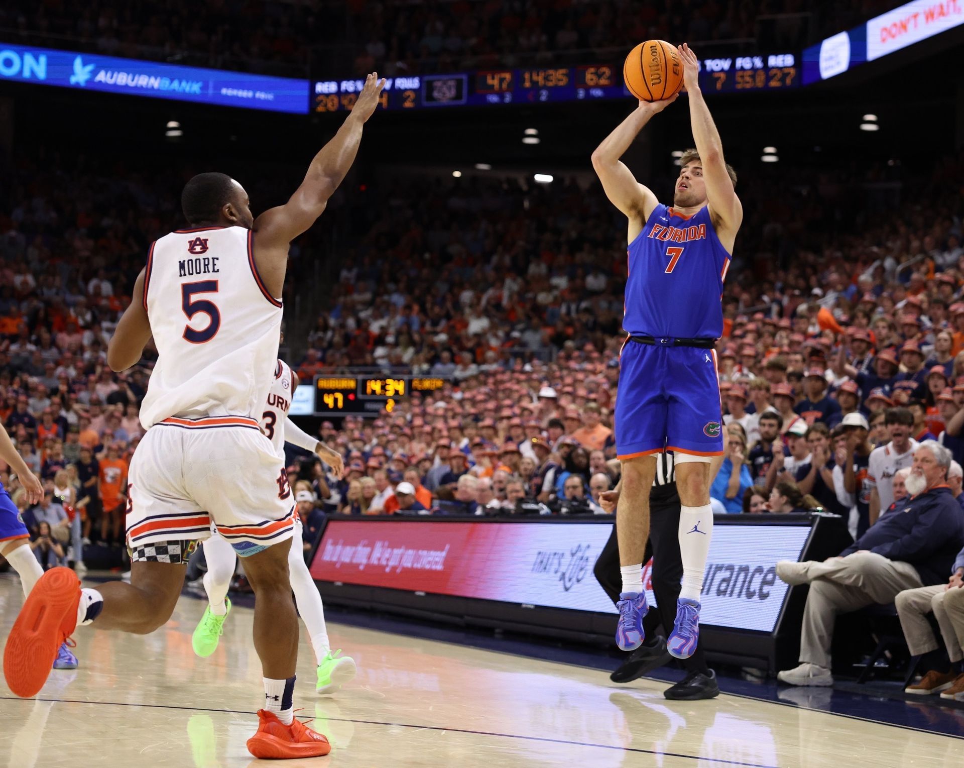 Just four days later at Auburn — one of the toughest environments in college basketball — and with Alijah Martin unavailable due to a hip pointer, six different Gators contributed from long range. Clayton added four of his own, while sophomore guard Urban Klavzar was perfect, hitting three triples on three attempts.