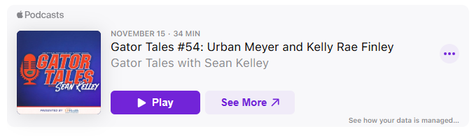 The episode opens with Meyer, who reflects on his upcoming induction into the College Football Hall of Fame as part of the 2025 class this December. He and Kelley also look ahead to his honorary return to The Swamp for the Tennessee matchup on Nov. 22, wrapping up with Meyer’s perspective and guidance for the next UF football head coach.