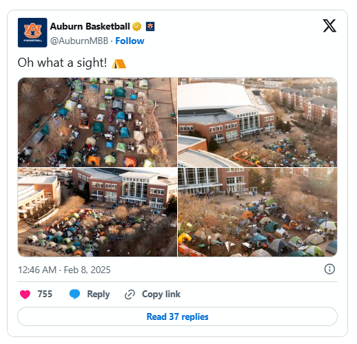 AUBURN, Ala. – At approximately 10:20 p.m. local time Tuesday, the final buzzer sounded on Auburn’s 98-70 rout of Oklahoma. Yet even before the nation’s top-ranked team had officially secured its 14th consecutive win, dozens of fans from the raucous student section – “The Jungle” – had already left their seats, exited Neville Arena, and begun lining up again.