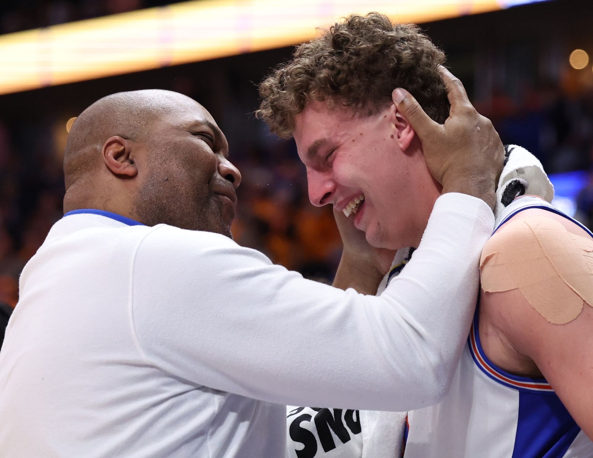 And that was only the beginning. Similar scenes unfolded in San Francisco after Florida clinched the NCAA West Region title, and again in San Antonio, where the Gators captured the national championship against Houston. As the final buzzer sounded, tournament hero Walter Clayton Jr. launched himself into Handlogten’s arms—an image that instantly became one of the defining moments of March Madness.